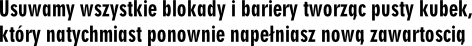 Otacza nas nowa rzeczywistość w której stare, dawno przyjęte formy działań i schematy po prostu przestały działać. Stało sie to dlatego , że w nowych czasach zaistniała konieczność użycia nowych insrukcji, nowych nawyków i nowej menatlności. Ale wiadomo…gdy kubek jest pełen nie da się go napełnić ponownie. Trzeba go najpierw opróżnić. Expandiso uwalnia. Uwalnia cały śmietnik z Twojego życia, niezależnie od tego jak głęboko on w Tobie siedzi.