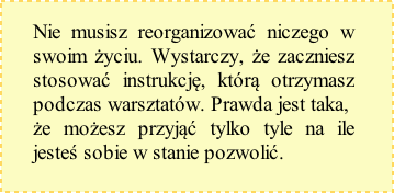 Dziękuję za wspanialy czas spędzony z Wami na warsztatach EXPANDISO. Śmiem twierdzić, że była to moja najlepsza decyzja w życiu. Nie bylo u mnie ani chwili zawahania przed podjęciem decyzji odnośnie uczestnictwa w tych warsztatach. I dopięłam swego :)) Pierwszy mój sukces, choćby nie był wielki, będzie najlepszą reklamą dla innych, którym polecę EXPANDISO!